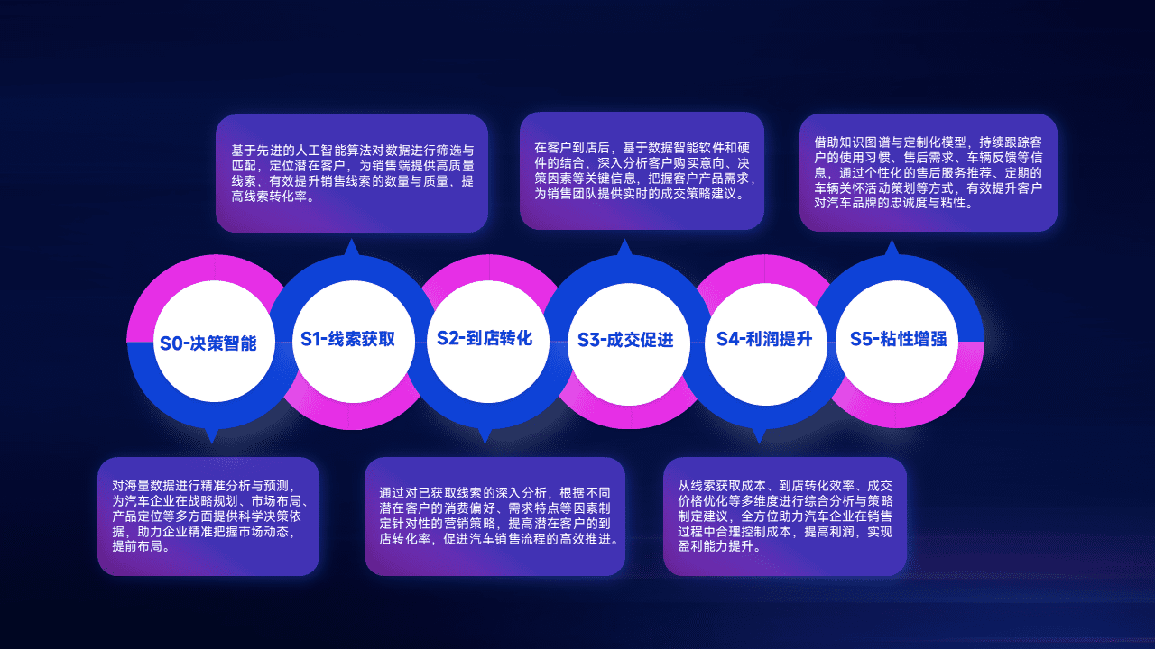 通过拓宽潜在客户来源、、优化线索分配并提高到店转化率,,以增强销售效率。。同时,,,利用线索数据不断优化分析模型,,,,有效提升转化率,,,,扩大营销影响力。。